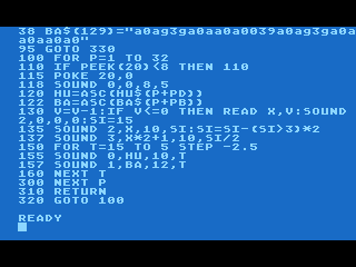 ![]() Hlavní část mé BASICové rutiny pro přehrávání hudby. |